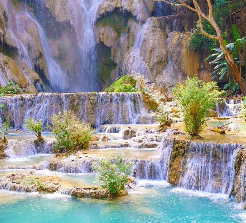 특징: 루앙프라방 여행 가볼 만한 곳으로 '꽝시 폭포'는 도시에서 약 30km 떨어진 곳에 위치한, 청록빛 계단식 폭포가 절경을 이루는 자연 명소입니다. 3단 폭포의 아름다운 풍경과 함께 시원한 물놀이를 즐길 수 있습니다.