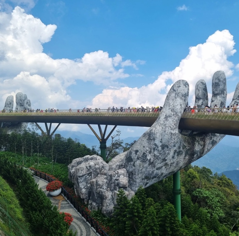세계 최장 길이 5.8km 케이블카를 타고 해발 1,487m 바나 힐스 정상에 오르면, 두 거대한 손이 골든 브릿지를 받치고 있는 독특한 풍경이 펼쳐집니다. 프랑스 마을, 알파인 코스터, 와인셀러, 꽃 정원 등 다양한 볼거리와 체험거리가 많아 가족, 커플, 친구 여행객 모두에게 필수 방문지입니다.